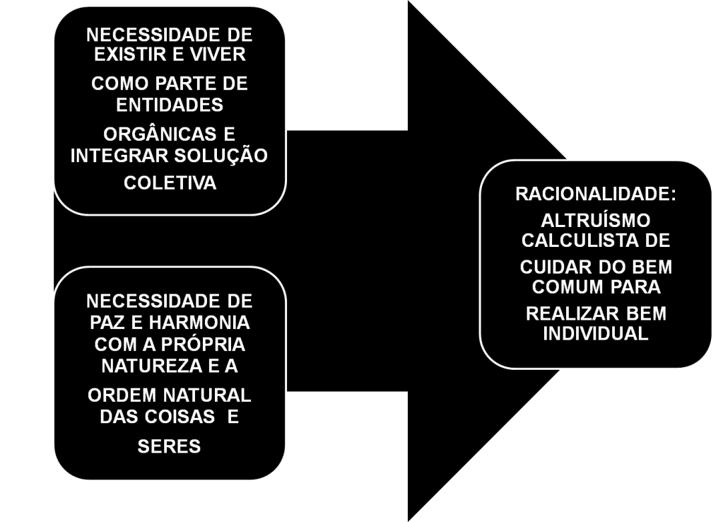 E finalmente, mas crucialmente, não tendo o indivíduo condições de vida autônoma, conclui-se da necessidade do amor como comportamento de conveniência no mundo em que se vive. O “amor como comportamento racional” para possibilitar convivência com efetivação de condições sistêmicas de vida. Em síntese: “o amor como comportamento racional, como a sabedoria de cuidar do bem do coletivo, do bem comum, para calculisticamente cuidar do bem individual”!!!